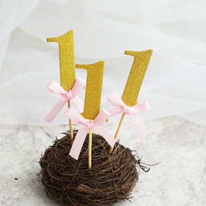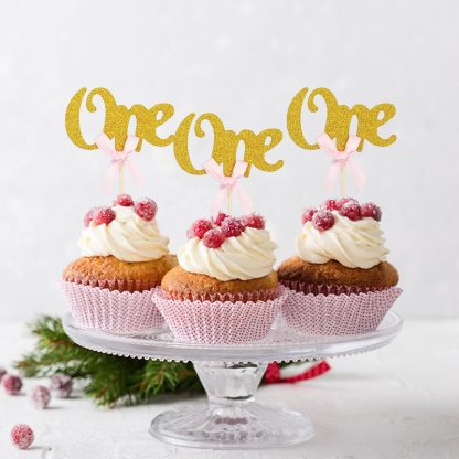 1st B'day Cupcake Picks 10pk with Pink ribbon