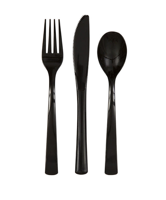 BLACK ASSORTED REUSABLE CUTLERY 18pk