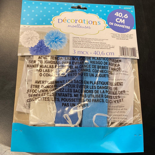 FLUFFY TISSUE DECORATIONS - MULTI 3pk 40cm
