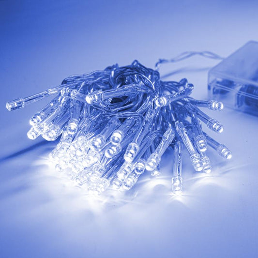 Fairy Lights Battery Operated 50 LED 5m Cool White 2 Function Clear Wire