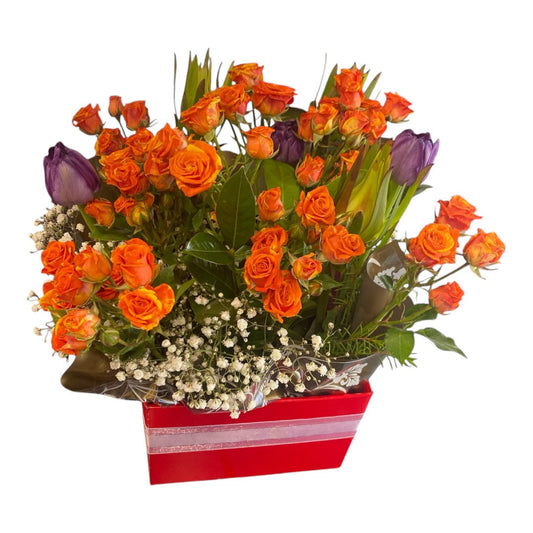 Mini Orange Spray Head with tulips Fresh Flowers Arrangement