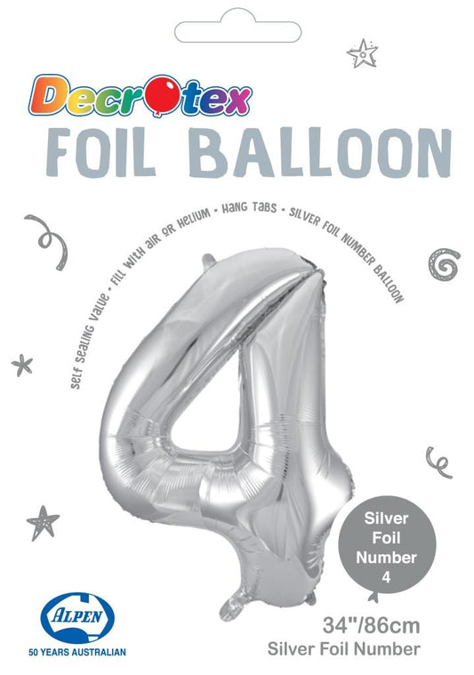 Silver "4" Numeral Foil Balloon 86cm (34")