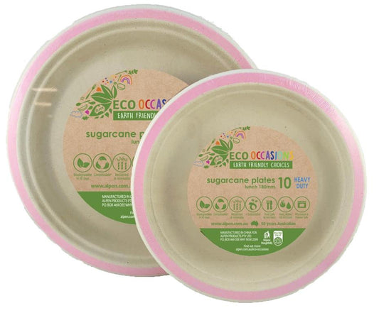 SUGCANE LUNCH PLATE LIGHT PINK EDGE QUANTITY 10