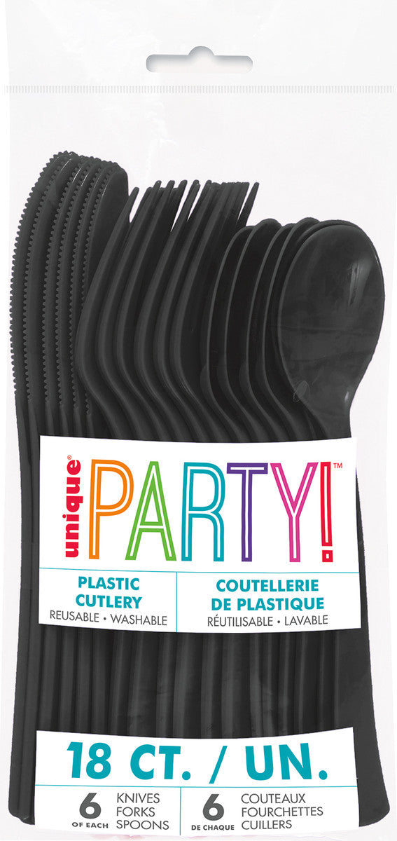 BLACK ASSORTED REUSABLE CUTLERY 18pk