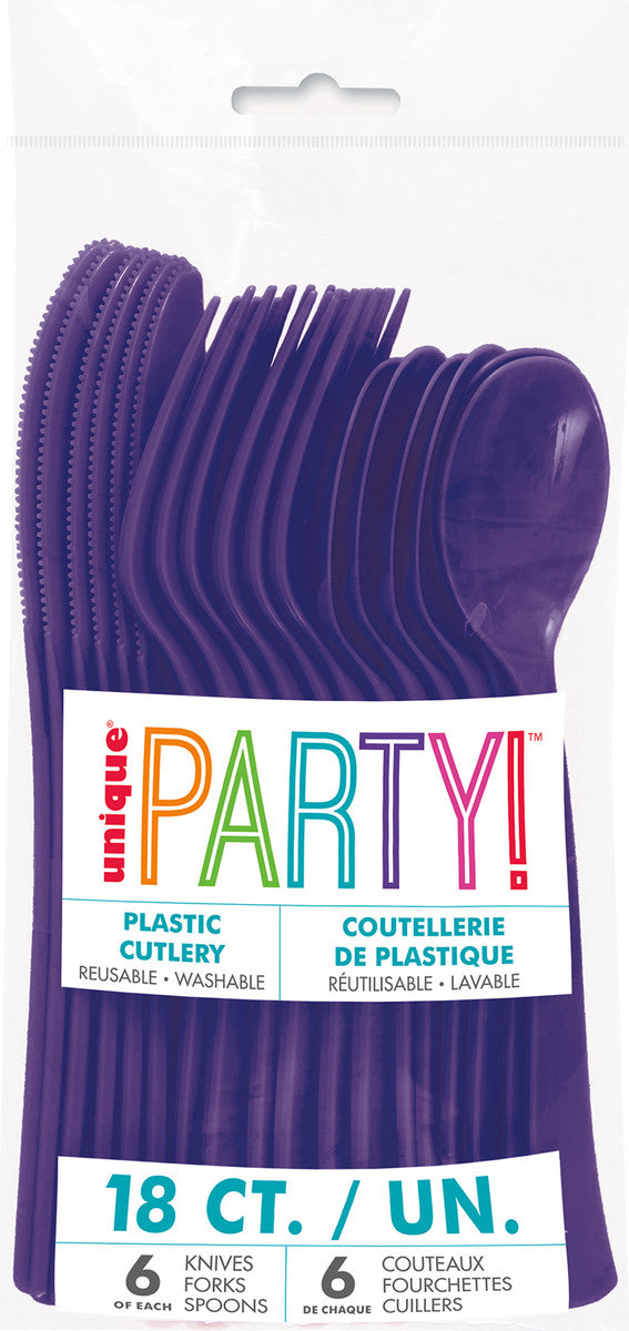 DEEP PURPLE ASSORTED REUSABLE CUTLERY 18pk