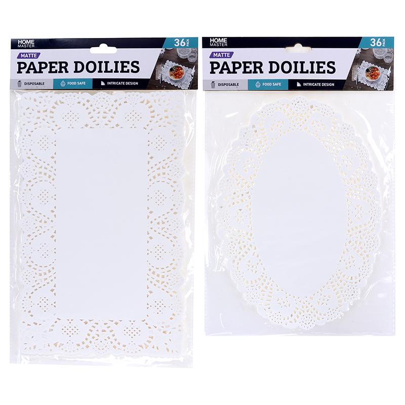 Doilies Lace Mat Assorted Shapes - Oval (27cm x 19cm) & Rectangle (30cm x 19cm) 36pk
