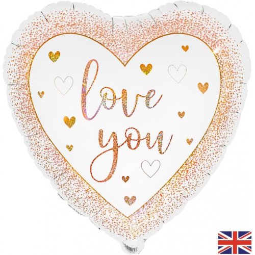 Love You Hearts Rose Gold 18inch Holographic Pack 1