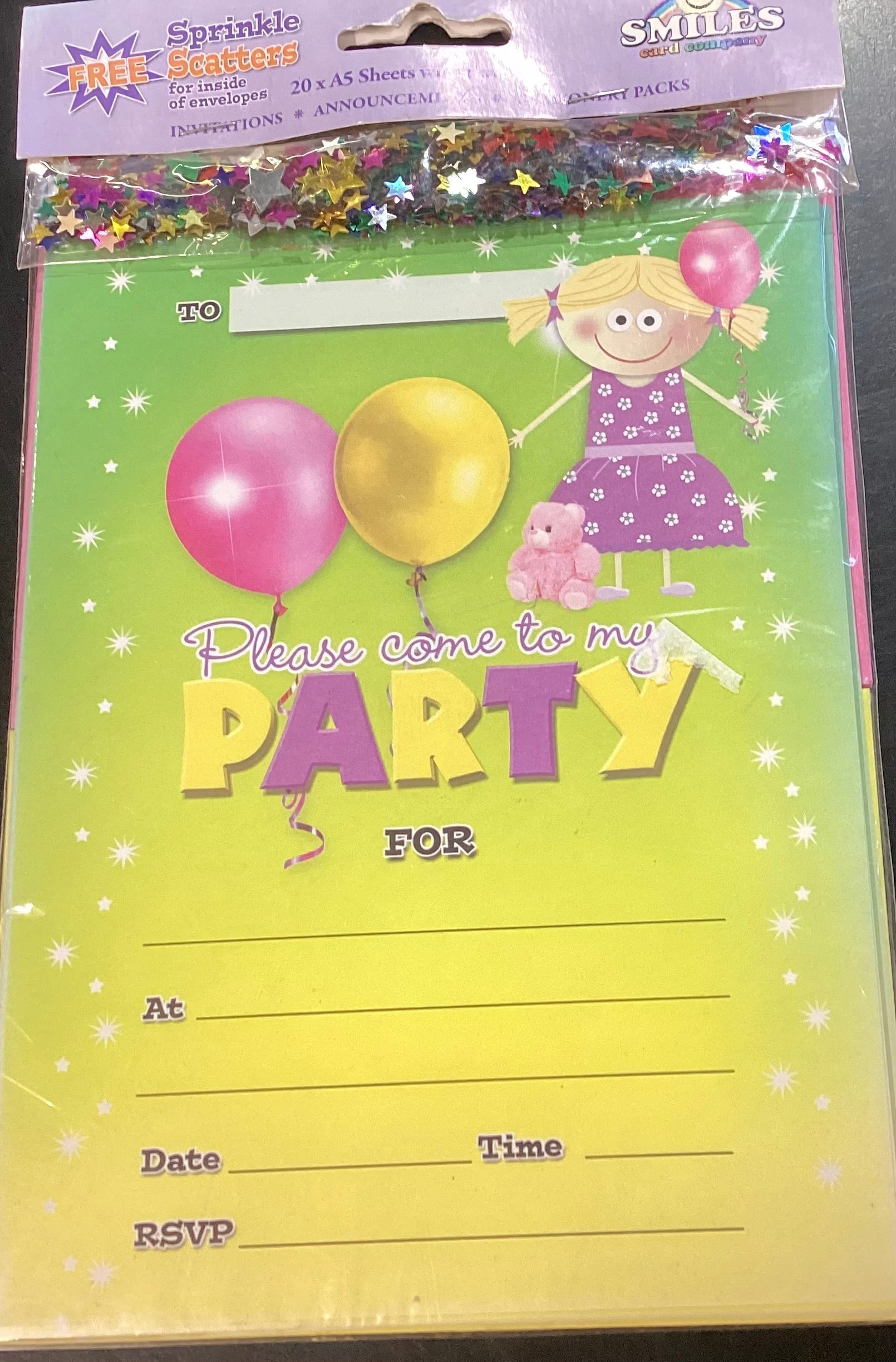 Pink and Yellow Balloons Desidn Invitation cards with Envelop