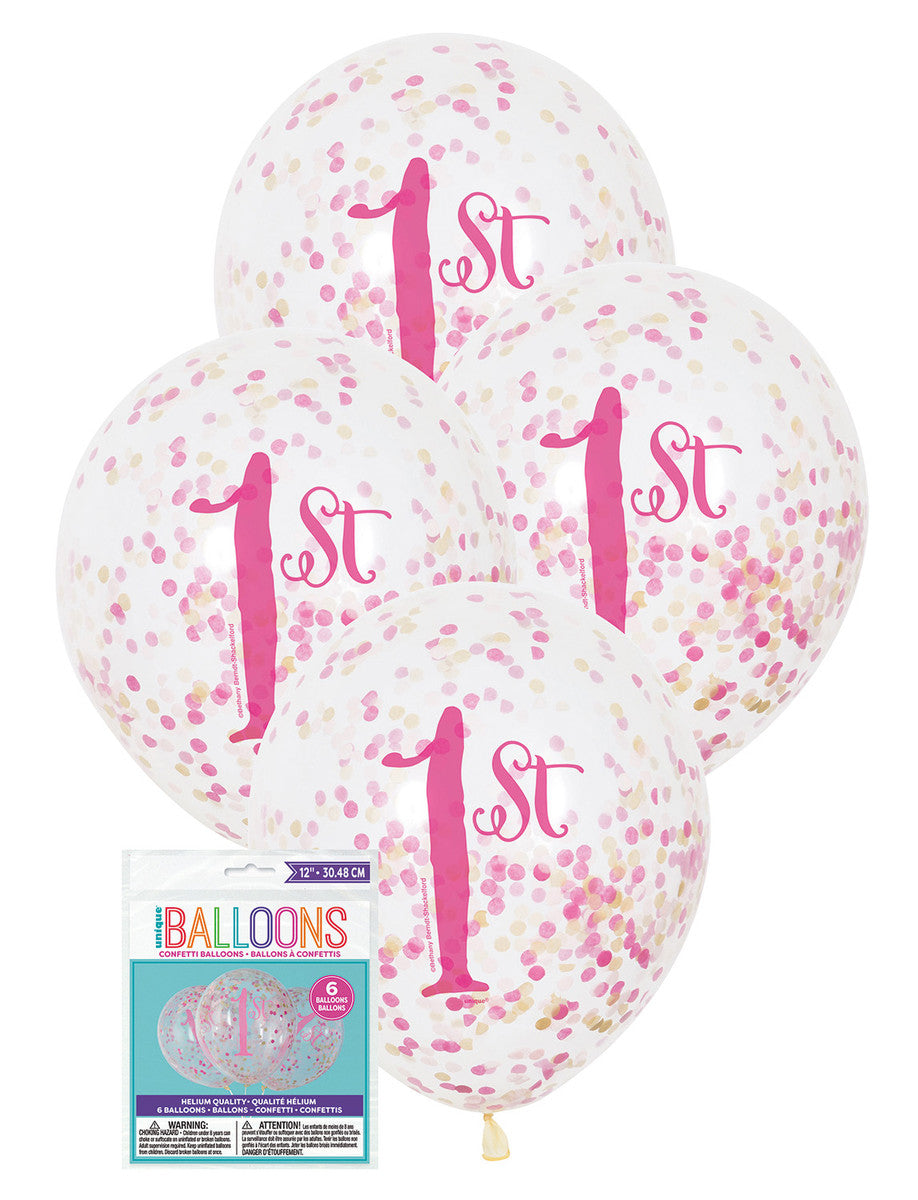 PINK & GOLD 1ST BIRTHDAY 30CM (12") DARK PINK, LIGHT PINK & GOLD CONFETTI 6pk