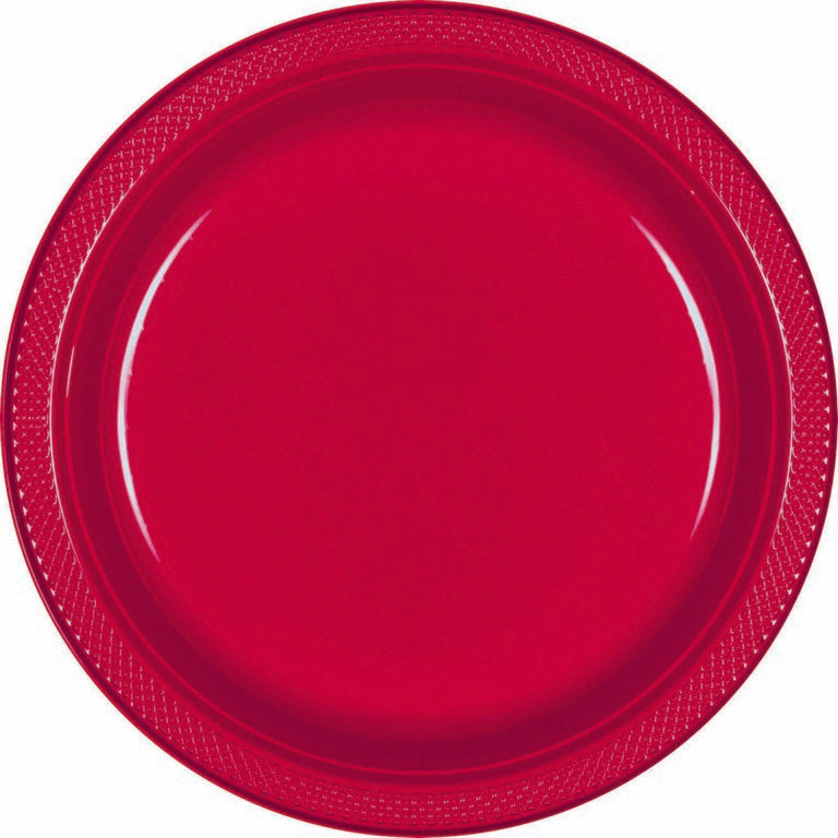 Plastic Round Plates (9"/23cm) 20Pack- Apple Red